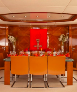 To enjoy your meals in style and comfort, the Azimut 100 has an air-conditioned indoor dining room. Here, you can savor the delicacies prepared in the kitchen and share unforgettable moments with your companions in a fresh and pleasant atmosphere.
