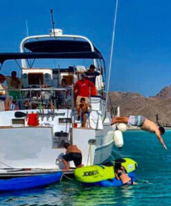 This large yacht, with powerful engines, guarantees fun on any fishing or snorkeling adventure around the beautiful waters of La Paz. If you’re looking for an ideal fishing yacht for a group of 2 to 10 people, this fully equipped and luxurious fishing vessel is perfect for you. Set sail with your friends and family for an unforgettable experience.