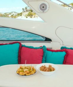 – Open National Bar (Mojitos, Margaritas, Mexican Beers, Red Label Whisky, Bacardi Rum, Titos Vodka, Jose Cuervo Tequila) No champagne. Any other type of alcohol or wine bottles can be purchased from a liquor store and be delivered to the boat at your expense Yacht Charters Cabo.
