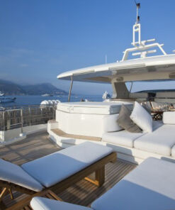 This incredible yacht measures 116 feet and is the perfect definition of luxury, modernity, and elegance. The charm of the white deck combined with the custom wood finish makes this vessel truly elegant and sophisticated. Upon boarding this Mega Yacht, you’ll be captivated by the stunning views of the sea and sky visible from all areas of this expansive masterpiece. It features ample lounging space, ideal for enjoying a pleasant chat with your guests or having a few drinks to beat the heat — activities you can enjoy both outdoors and indoors.