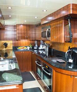 It also features a swim platform, deck shower, jacuzzi, and spacious sun beds on the deck. Not to mention the grill and outdoor dining seating. With all these amenities, who would want to set foot on land again? This Mega Yacht has a capacity for 8 people, spread across four bedrooms, each with en-suite bathrooms. Additionally, there is a crew of 4 members, so you can relax and enjoy yourself worry-free.