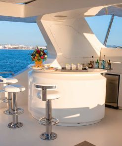 – Open National Bar (Mojitos, Margaritas, Mexican Beers, Red Label Whisky, Bacardi Rum, Titos Vodka, Jose Cuervo Tequila) No champagne. Any other type of alcohol or wine bottles can be purchased from a liquor store and be delivered to the boat at your expense Refit Azimut 116′. Yacht charters cabo